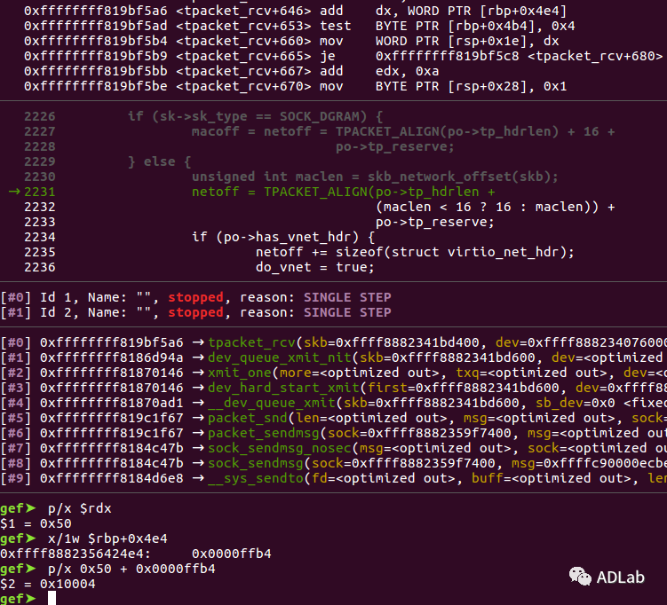 rdxÖдæ·Å×ÅTPACKET_ALIGN(tp_hdrlen+(maclen < 16 ? 16 : maclen))£¬£¬£¬£¬£¬¾ÞϸΪ0x50¡£¡£¡£¡£¡£¡£rbp+0x4e4´¦´æ·Å×Åpo->tp_reserve£¬£¬£¬£¬£¬¾ÞϸΪ0x0000ffb4¡£¡£¡£¡£¡£¡£Ïà¼Óºó£¬£¬£¬£¬£¬ÕûÊýÉÏÒçºó£¬£¬£¬£¬£¬rdxΪ0x0004¡£¡£¡£¡£¡£¡£µ±Ö´Ðе½Ô½½ç»á¼ûʱ£¬£¬£¬£¬£¬ÏêϸÈçÏ£º