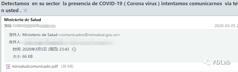 £¨3£©Í¼2-4Êǹ¥»÷Õßαװ³É¸çÂ×±ÈÑÇÎÀÉú²¿µÄ¹¥»÷ÓʼþÖ®Èý¡£¡£¡£¡£¡£¡£ÓʼþÖ÷ÌâΪ¡°Detectamos en su sector la presencia de COVID-19 ( Corona virus ) intentamos comunicarnos via telefonica con usted¡±£¨·ÒëºóΪ£º¡°ÎÒÃÇÔÚÄúµÄ²¿·Ö·¢Ã÷ÁËCOVID-19( Corona virus )£¬£¬£¬£¬²¢ÊµÑéͨ¹ýµç»°ÓëÄúÁªÏµ¡±£©¡£¡£¡£¡£¡£¡£
