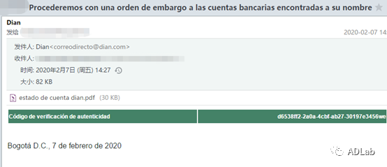 ͼ2-5Êǹ¥»÷Õßαװ³É¸çÂ×±ÈÑǹú¼Ò˰ÎñºÍº£¹Ø×ÜÊðµÄ¹¥»÷Óʼþ¡£¡£¡£¡£¡£¡£ÓʼþÖ÷ÌâΪ¡°Procederemos con una orden de embargo a las cuentas bancariasencontradas a su nombre¡±£¨·ÒëºóΪ£º¡°ÎÒÃǽ«¶ÔÒÔÄúÃûÒå·¢Ã÷µÄÒøÐÐÕË»§·¢³ö¶³½áÁ£©¡£¡£¡£¡£¡£¡£