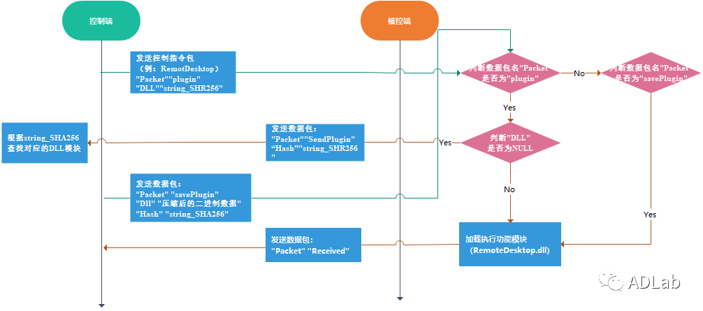 ÔÚÕë¶ÔľÂí³ÌÐò´¦Öóͷ£¿ØÖÆÏÂÁ·Ö¾ÙÐÐÏêϸÆÊÎöʱ£¬£¬£¬£¬ÎÒÃÇ·¢Ã÷ÔÚ±»¿Ø¶ËľÂíµÄ¶ñÒâ´úÂëÖУ¬£¬£¬£¬²¢Î´°üÀ¨ÈκÎÔ¶³ÌÖ¸ÁîµÄÏêϸʵÏÖ¹¦Ð§´úÂë¡£¡£¡£¡£¡£¡£ÓÚÊÇÎÒÃÇÕë¶Ô¿ØÖƶ˺ͱ»¿Ø¶Ë×ö½øÒ»²½µÄµ÷ÊÔºÍÊÓ²ìºó£¬£¬£¬£¬·¢Ã÷ËùÓиúÔ¶³Ì²Ù×÷Ïà¹ØµÄ¹¦Ð§´úÂ룬£¬£¬£¬¶¼ÊÇÆ¾Ö¤Æä¹¦Ð§¾ÙÐйéÀàÇÒ±»·â×°ÔÚ²î±ðµÄDLLÄ£¿£¿£¿éÖС£¡£¡£¡£¡£¡£µ±¿ØÖƶËÔÚÖ´ÐÐÔ¶³Ì²Ù×÷ʱ£¬£¬£¬£¬ÔòÊ×ÏÈÓë±»¿Ø¶Ë·¢ËÍÌØ¶¨µÄÊý¾Ý°ü¾ÙÐн»»¥£¬£¬£¬£¬½Ó×ÅÔÙ½«Ñ¹ËõºóµÄ¹¦Ð§Ä£¿£¿£¿é¸½¼Óµ½Êý¾Ý°üÖз¢Ë͸ø±»¿Ø¶Ë£¬£¬£¬£¬Óɱ»¿Ø¶ËÒÔ²»Â䵨ÐÎʽÔÚÄÚ´æÖмÓÔØÖ´ÐУ¬£¬£¬£¬À´Íê³É¿ØÖƶËÖ¸¶¨µÄ¿ØÖÆÏÂÁî¡£¡£¡£¡£¡£¡£Í¨¹ý½ÓÄÉ¡°propelling in use£¬£¬£¬£¬destory after use¡±µÄÊÂÇéģʽ£¬£¬£¬£¬¹¥»÷Õ߼ȿÉÒÔÎÞаµØµ÷½âľÂí³ÌÐòµÄÉèÖÃÐÅÏ¢£¬£¬£¬£¬ÓÖÄܽÏÓÐÓõرÜÃâȡ֤ÆÊÎöÖ°Ô±»ñÈ¡Æä½¹µã¹¥»÷Ä£¿£¿£¿é£¬£¬£¬£¬ÇÒÔÚÒ»¶¨Ë®Æ½ÉϵִïÃâɱºÍÈÆ¹ýÇå¾²»úÖÆµÄЧ¹û¡£¡£¡£¡£¡£¡£Í¼4-46ÊÇľÂí³ÌÐòÔÚÖ´ÐпØÖÆÏÂÁîʱ£¨ÒÔ¡°Ô¶³Ì¿ØÖÆ×ÀÃæ¡±Ö¸ÁîΪÀý£©£¬£¬£¬£¬Á½Í·Ö®¼äµÄÏêϸ²Ù×÷Á÷³Ìͼ¡£¡£¡£¡£¡£¡£